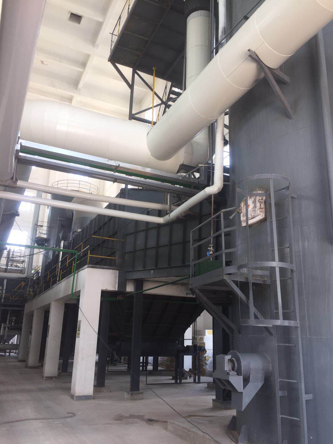 經(jīng)過預處理的廢液、固廢或廢氣由進料裝置進入一次燃燒室,廢料與助燃空氣在焚燒爐爐膛內(nèi)經(jīng)過復雜的物理、化學反應,使廢料中的有害物質(zhì)徹底分解,焚燒溫度控制在750-800℃(不同的物料焚燒溫度不同);產(chǎn)生的煙道氣進入迷宮沉降除塵器除鹽(底部自動出鹽),然后進入二級燃燒室進行高溫焚燒,二級燃燒室內(nèi)焚燒溫度控制在1100℃左右,產(chǎn)生的高溫煙道氣經(jīng)SNCR脫硝后,進入余熱回收裝置,高溫煙道氣的部分熱量轉(zhuǎn)化為蒸汽回收,煙氣溫度降至550℃左右,之后進入G-G換熱器與煙氣再加熱器1的熱側(cè),為補燃空氣預熱和將布袋除塵器出來的煙氣再次升溫至脫硝所需溫度,同時煙氣降溫至500℃左右,(根據(jù)國標要求:為避免二噁英的再次合成,煙氣要在1S內(nèi)從500℃左右降至200℃以下),煙氣進入半干急冷塔降溫至200℃以下,經(jīng)布袋除塵后,煙氣經(jīng)煙氣再加熱器1加熱升溫至350℃左右,通過SCR脫硝,進入煙氣再加熱器2熱側(cè)作為熱源加熱汽水分離后的煙道氣,之后進入噴淋吸收塔脫除酸性氣體,且再次降溫至75℃左右,進入汽水分離器脫水后,經(jīng)過煙氣再加熱器2的冷側(cè)被加熱至120℃左右經(jīng)煙囪外排。